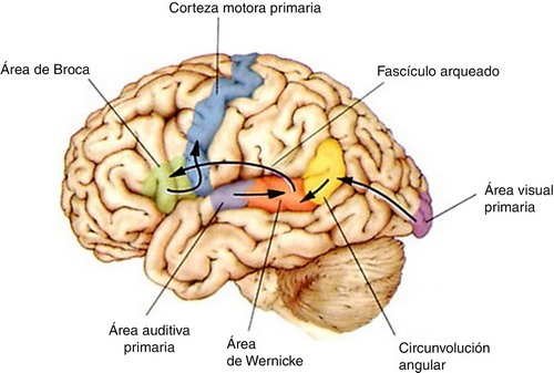 El cerebro humano se divide en dos hemisferios, izquierdo y derecho. En el izquierdo se desarrolla todo el proceso del habla en dos áreas y un vínculo o unión de conexión entre ellas. El área de Wernicke, llamada así por su descubridor quien la relacionó con la producción del lenguaje. El área de Broca, en honor a Paul Broca, responsable de establecer su relación con el habla. La interconexión entre ambas áreas no lleva el nombre de ningún investigador, se denomina arcuate fasciculus, o fascículo arqueado o arcuato, y, en neuroanatomía se identifica como trabecula septomarginalis.